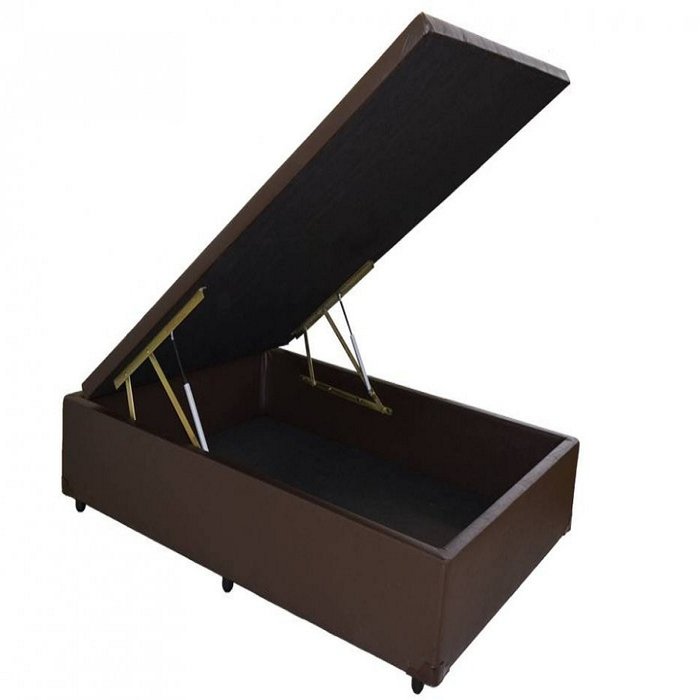 Cama Box Baú Solteirão 1,10x1,88x0,40 Inteiriço Premium Corino Marrom