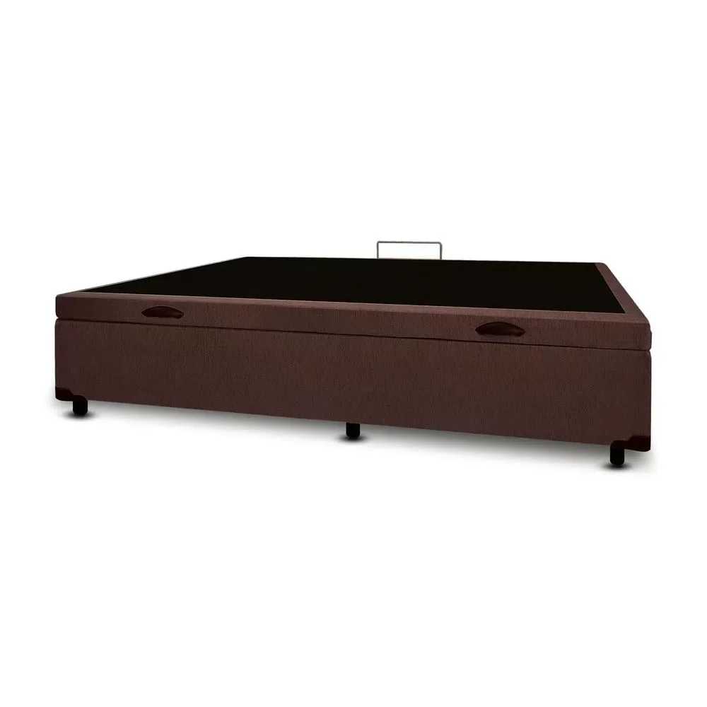 Cama Box Baú Solteiro Blindado Linhão Marrom com pistão a gas Marrom
