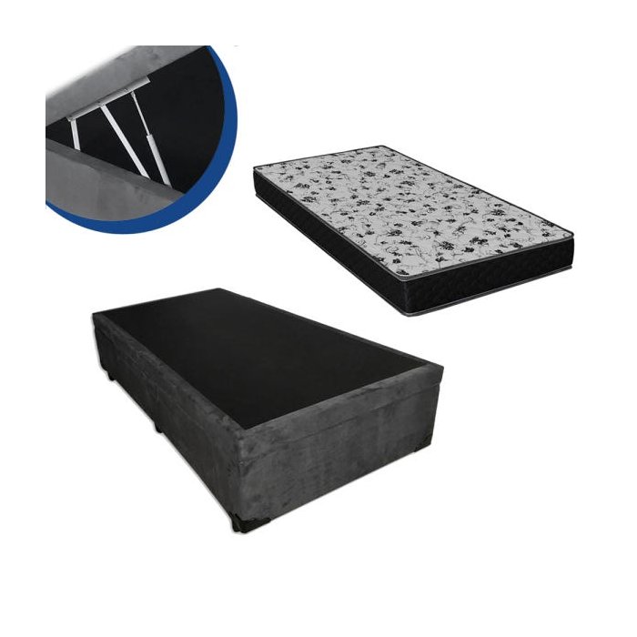 Cama Box Baú Solteiro Colchão Espuma D33 Bordado + Box Suede Cinza Sp Móveis 53x78x188