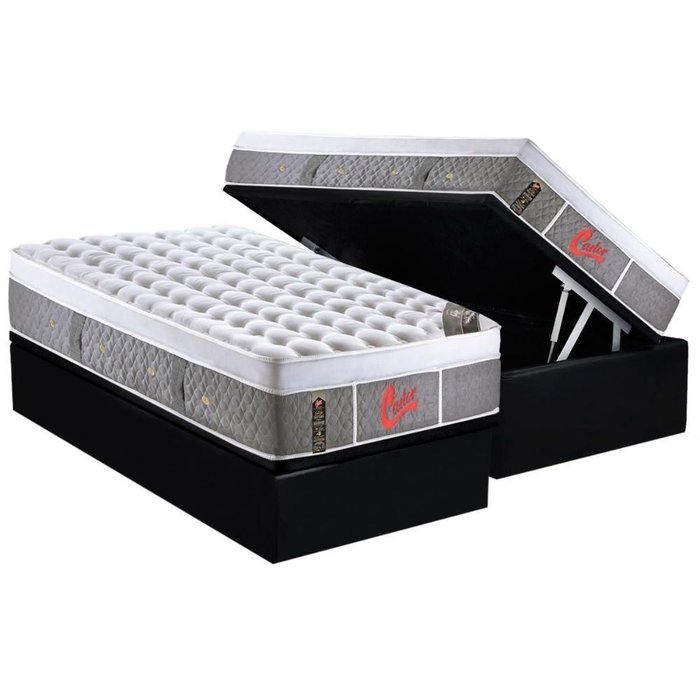 Cama Box Baú Solteiro: Colchão Molas Enadas Castor Light Stress Oxygen New Plush + Base CRC Courano Black(88x188)