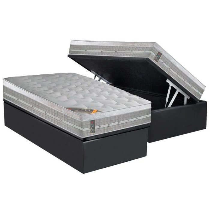 Cama Box Baú Solteiro: Colchão Molas Ensacadas Castor Pocket Premium Gel + Base CRC Suede Gray(88x18