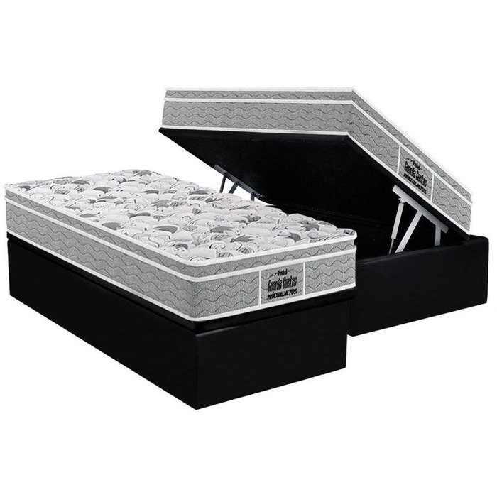 Cama Box Baú Solteiro: Colchão Ortopédico Probel D45 / Ep Guarda Costas Próextreme Plus + Base Preto