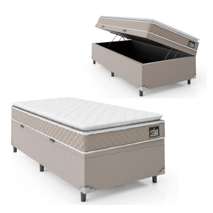 Cama Box Baú Solteiro com Colchão D45 Pillow Top 88x188 cm - Bege