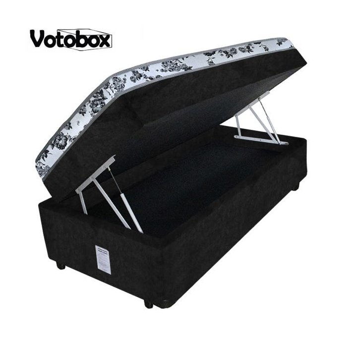 Cama Box Baú Solteiro Conjugado de Molas 78x188x49cm Votobox Suede Preto