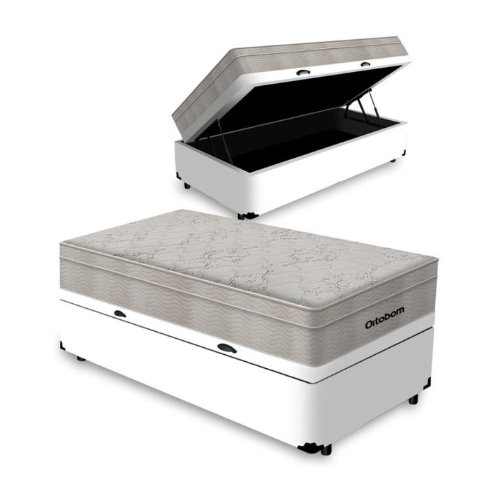 Cama Box Baú Solteiro King + Colchão de Molas Ensacadas Ortobom Airtech 96cm Suporta até 150 Kg