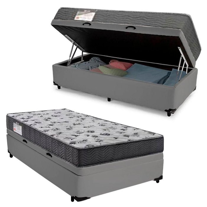 Cama Box Baú Solteiro Sintético + Colchão de Espuma D33 - Sereneprime - 88cm Cinza Cinza