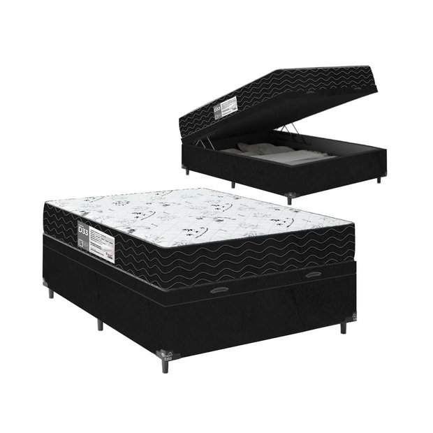 Cama Box Baú Viúva + Colchão D33 One Face - Suede Preto - e-Shop Casa