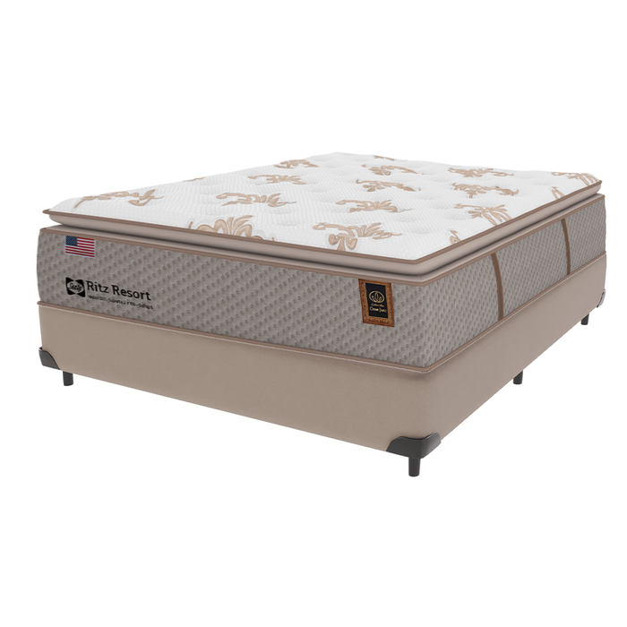 Cama Box Bege e Colchão Casal Ritz Resort Pillow High Tech Sealy Bege
