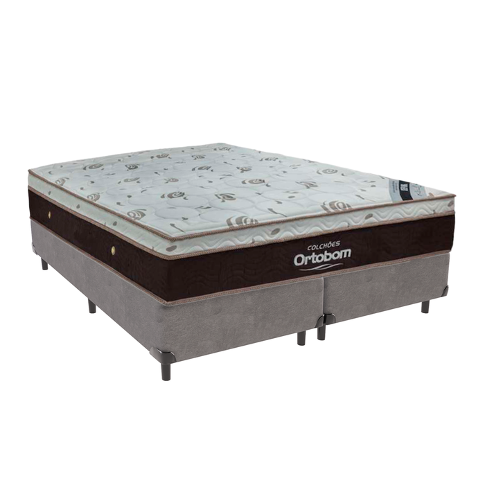 Cama Box Bipartido Queen Cinza e Colchão Sleep King Molas Ensacadas Ortobom