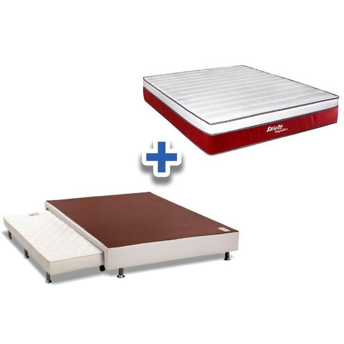 Cama Box c/Auxiliar Casal: Colchão Magnético Bom Pastor Infravermelho Longo Salute + Base CRC Couran