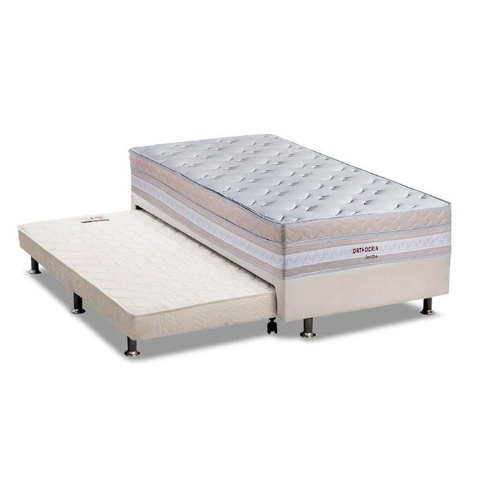 Cama Box c/Auxiliar Solteiro: Colchão Orthocrin Superlastic Sensitive + Base CRC Courano Branco(88x1