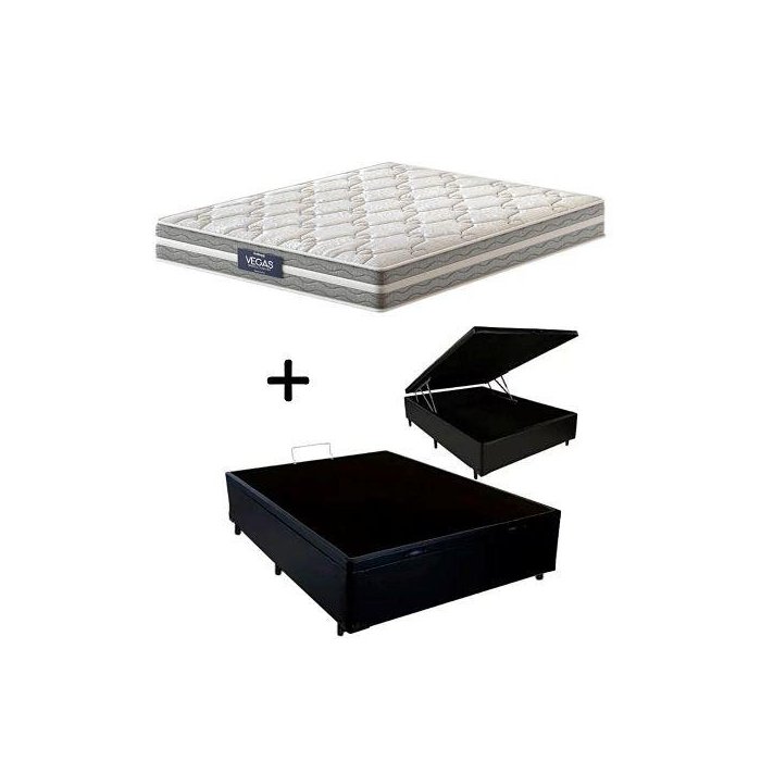 Cama Box C/ Baú Casal revestido em tecido sintético Preto + Colchão Vegas Springs se destaca pela combinação do conforto máximo e da estabilidade individual proporcionada pelo sistema antirruído do molejo mais querido do mundo, aquele das molas ensacadas individualmente e que quando um se movimenta o outro não sente. O segundo nível de conforto traz a espuma D28 desenvolvida para proporcionar um primeiro toque intermediário. Possui também um perímetro de borda de espuma D28, o que aumenta ainda mais o espaço de conforto e estabilidade nas extremidades. A primeira camada conta com Pillow Euro e revestimento em tecido branco com lateral cinza. entrega capacidade de sustentação de até 110 KG por indivíduo. Proporciona durabilidade e aconchego, ideais para quem tem preferência por colchões intermediários. Especificações Técnicas do Colchão: