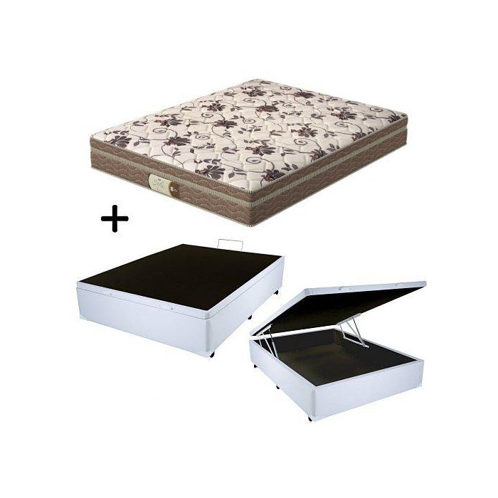 Cama Box C/ Baú Casal + Colchão Mola Ensacada Probel Style Pillow Euro Casal
