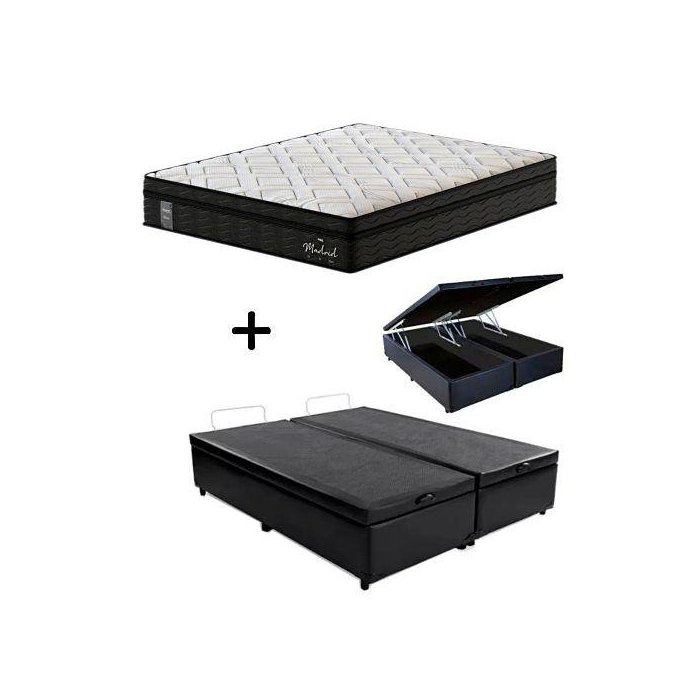 Cama Box C/ Baú King + Colchão de Molas Ensacadas Probel Madrid Pillow Euro Preto