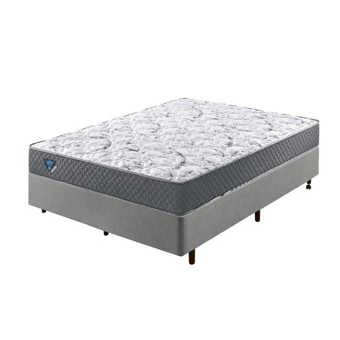 Cama Box Casal 138x188 com Colchão Molas Ensacadas Ecoflex Courino Linho Cinza