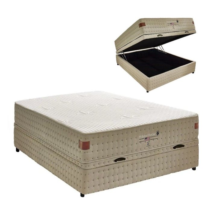 Cama Box Casal Baú Molas Ensacadas White Horse Carolina Mattress 138x188cm.