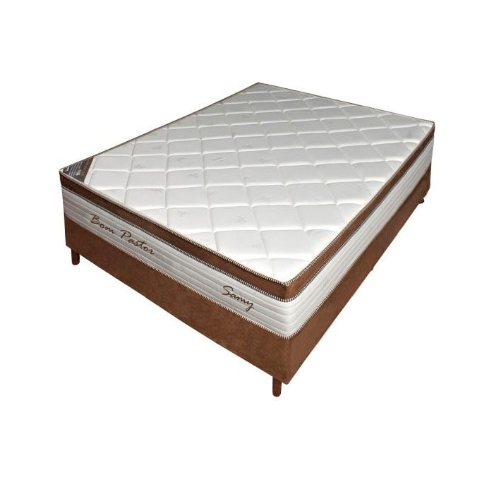 Cama Box Casal Bom Pastor + Colchão Bp Samy Pocket com Molas Ensacadas com Eps