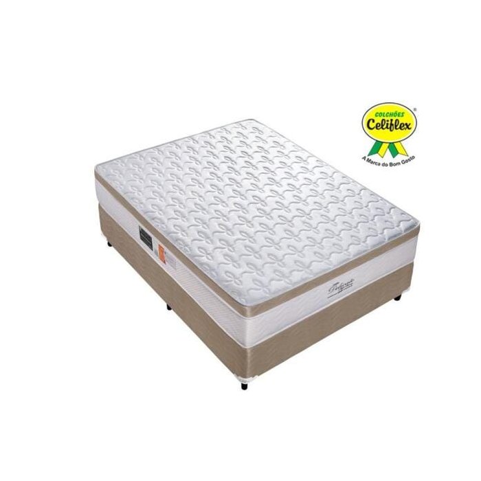 O conjunto casal Delicato Prolastic Luxo é o top de linha da Celiflex. Foi pensado para agradar aqueles que querem conjunto, combinando a tecnologia da mola prolastic, o conforto do europillow e uma cama box super resistente. Além da alta qualidade, esse colchão conta com uma beleza única!Produzido com molas prolastic de alta qualidade, que proporcionam a este colchão maciez, estabilidade e sustentação no molejo. Conta também com uma camada superior de europillow com espuma D28, isto é, visa aumentar sua sensação de conforto ao deitar. Essas tecnologias juntas ajudam você a ter uma ótima noite de sono. Bordado em tecido jacquard, seu revestimento possui acabamento reforçado entre a união dos materiais, tornando-o resistente e de toque agradável. Além disso, a elegância do bordado, com fios dourados, traz beleza e requinte ao seu quarto. A cama box é construída em madeira tratada, possui pés de madeira e rodízios na cabeceira para facilitar a movimentação. O conjunto apresenta tratamento antialérgico para proteger você das bactérias, fungos e ácaros, que podem atrapalhar o seu sono, oferecendo o conforto que você merece!Sobre a mola prolastic: Fios de aço, com alto teor de carbono, formato bicônico, temperados eletronicamente e interligados com arames de aço helicoidal. Possuem fios com diâmetro de 2 mm e altura de 14cm, se destacando em qualidade e tecnologia dos demais colchões.Sobre o europillow: O europillow é uma camada extra de espuma selada D28, que vai em cima do colchão com o objetivo de aumentar a maciez. O uso dele reduz o balanço que o colchão faz quando outra pessoa se mexe, aumenta sua resistência, durabilidade e contribui para um design mais atrativo, moderno e inovador. A escolha correta do europillow proporcionará melhores noites de sono para você!Características do colchão- Proteções: antialérgico (tratamento contra ácaros, bactérias, fungos e mofo)