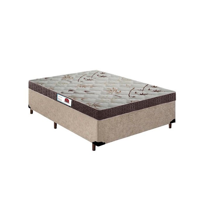 Cama Box Casal Colchão Espuma D33 Bordado + Box Suede Bege Serra Negra 56x138x188