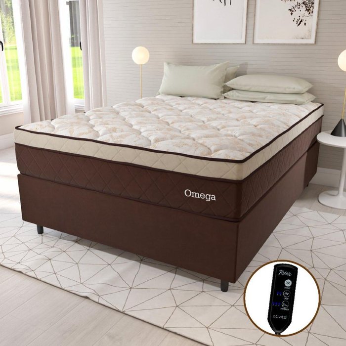 Cama Box Casal Colchão Magnético Massageador Omega 138x188x26cm Marrom
