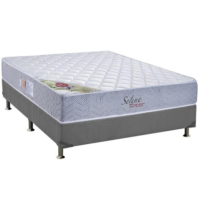 Cama Box Casal: Colchão Molas Bonnel Orthocrin Selene Plus Square + Base CRC Suede Cinza(138x188) Nobre