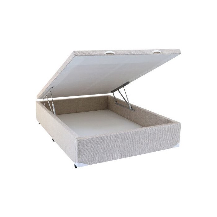 Cama Box Casal com Baú Mega Chenille Lyon com Pistão - 138x188 BEGE
