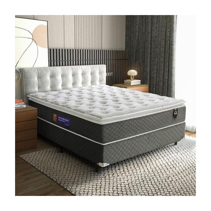 Cama Box Casal King House New York 138x188x71 Grafite/Branco com Molas Ensacadas