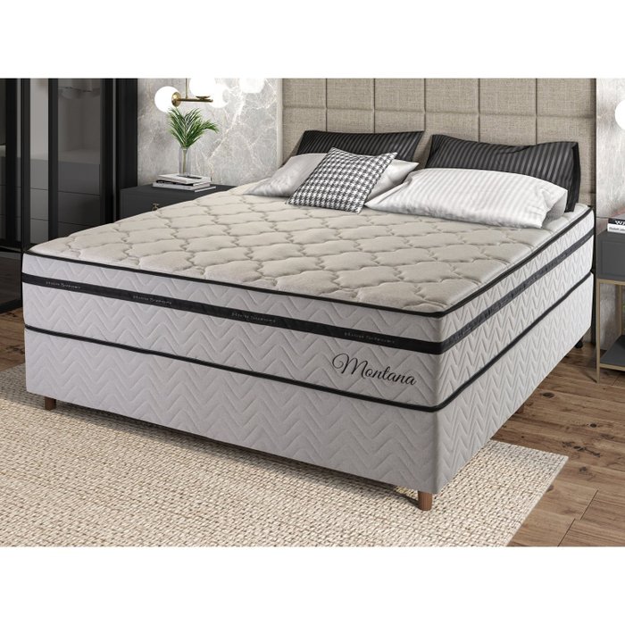Cama Box Casal Molas Ensacadas Montana Master 138x188x71 Cinza