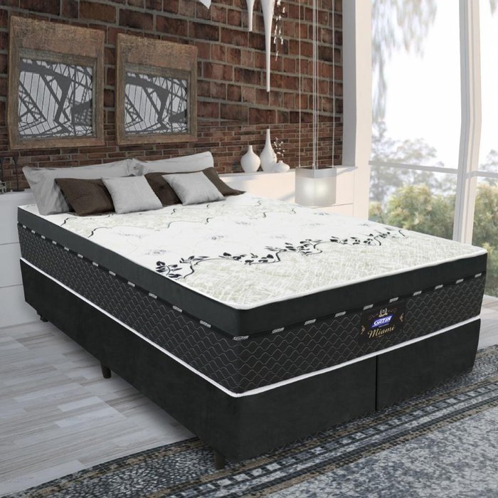 Cama Box Casal Queen Molas Ensacadas Miami Gazin 158cm Branco/preto - Suporta até 120kg por Pessoa Branco / Preto