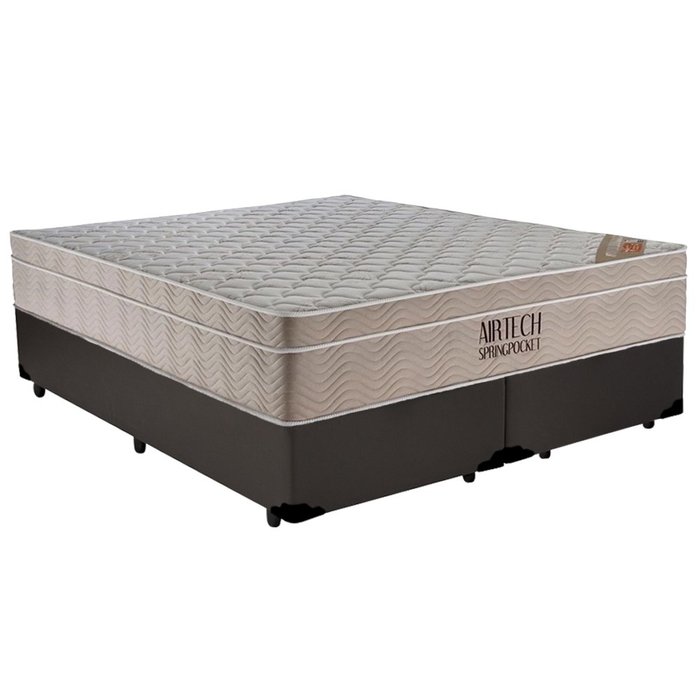 Cama Box Casal Sintético Bipartido Marrom + Colchão Ortobom Airtech Molas Ensacadas 65x138x188