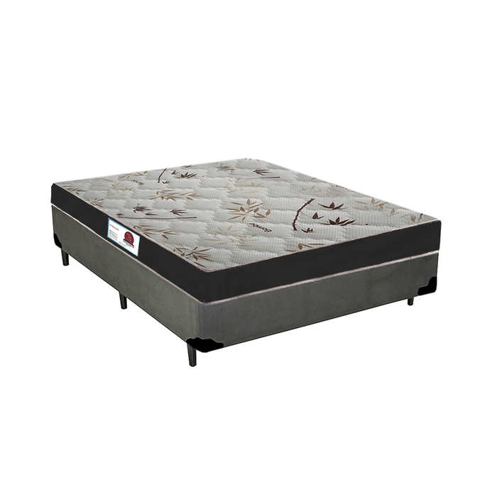Cama Box Casal Sintético Cinza + Colchão Casal Prime Semi Ortopédico 58x138x188