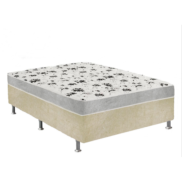Cama Box Casal Suede Bege + Colchão Casal Suede Cinza Espuma 138x188x55
