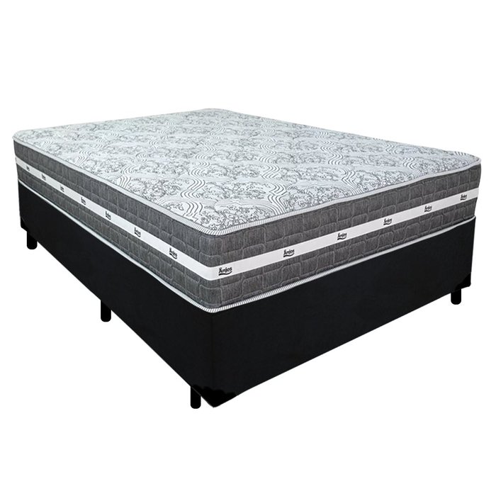 Cama Box Casal Suede + Colchão Anjos Black Graphite Molas Ensacadas 138x188x64cm