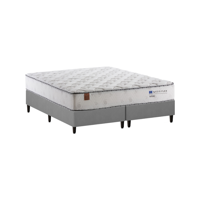 Colchão + Box Casal Flex Relax CisO Colchão + Box Casal Flex Relax Cis é um colchão de Ensacadas com o nível de conforto Intermediário e 26cm de altura. MolasAs molas ensacadas permitem que pessoas que dormem a dois e com pesos diferentes tenham um conforto ao dormir mais individualizado. Esse sistema oferece suporte e resistência para pessoas de biótipos diversos porque a pressão sofrida por uma mola não irá interferir nas demais, o sono do seu parceiro não será atrapalhadoConforto Camada de conforto - Espuma de alta performance Nível de conforto - Intermediário Altura do colchão - 26cmMedidas Disponíveis Casal (138x188)Garantia01 ano conforme certificado de garantia que acompanha o produto.