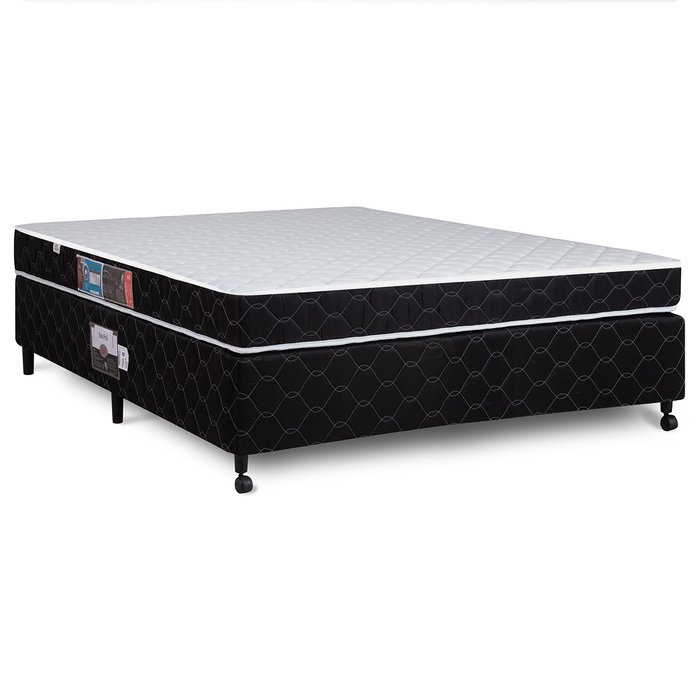 Cama Box + Colchão Castor Casal Montblanc Double Face D33 138x188x42cm Branco e Preto