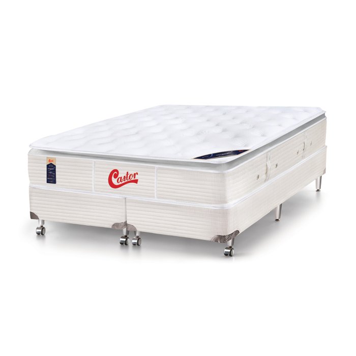 Cama Box + Colchão Castor King Super Luxo Vitagel One Face Pocket 180x200x56cm