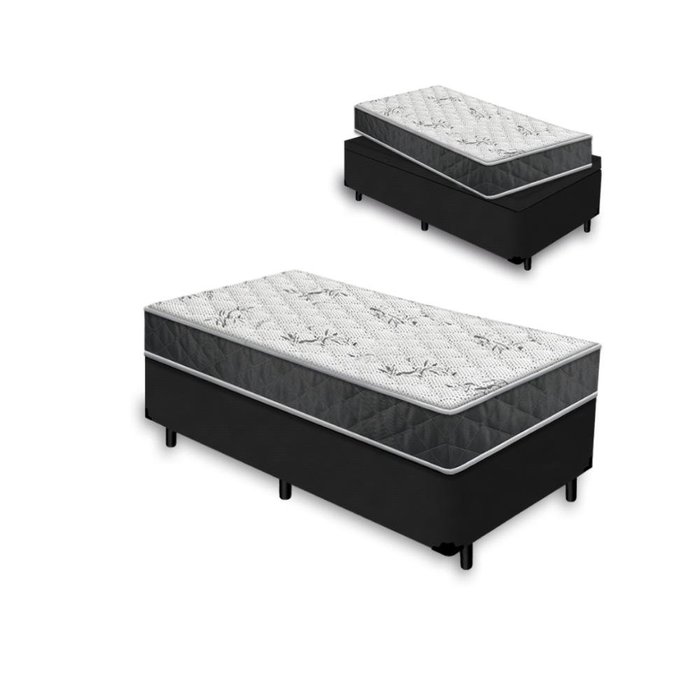 Cama Box + Colchão de Solteiro D45 Firm Confort 78x188x53cm Preto Suporta até 150kg por Pessoa