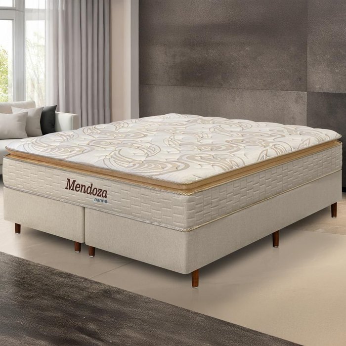 Cama Box + Colchão King Size Mendoza Molas Ensacadas Pillow Top 193x203x71cm - Extra Macio