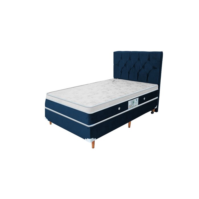 Cama Box Colchão Magnético Solteiro com Infra e Anti Gemes com Cabeceira - Slim:azul
