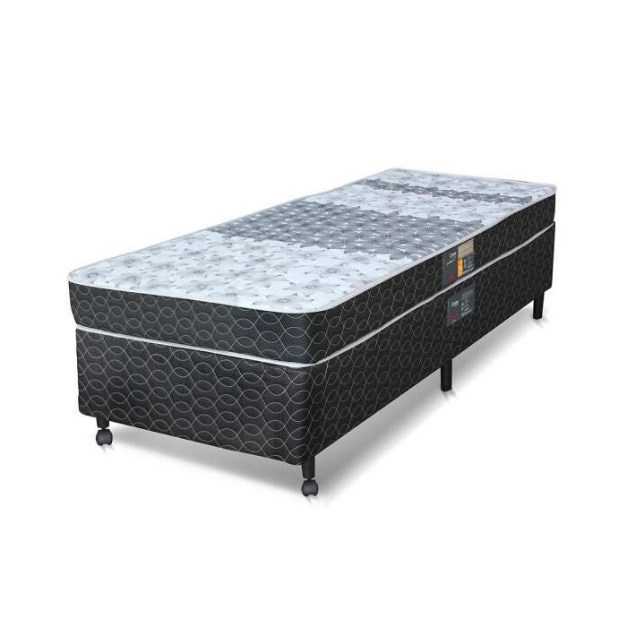 Cama Box + Colchão Solteiro Castor Molas Bonnel Class Slim One Face Preto e Branco 78
