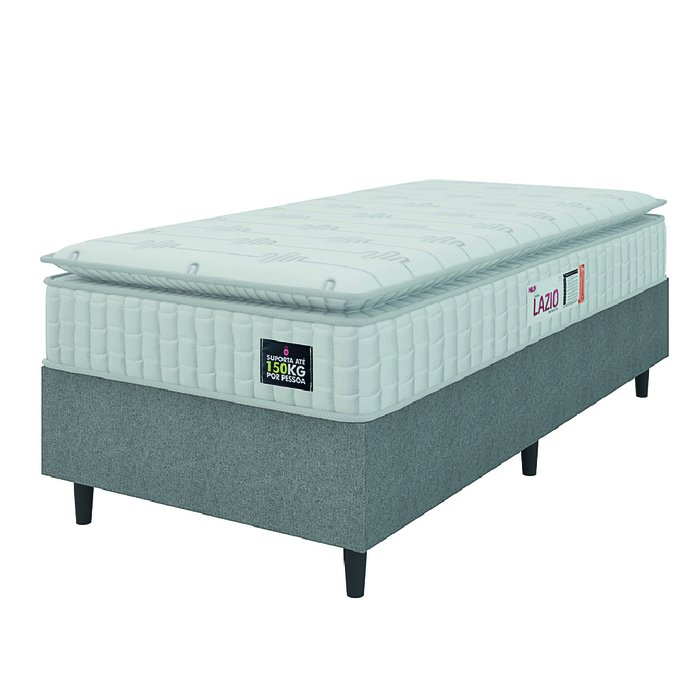 Cama Box Colchão Solteiro Espuma D45 Lazio Pillow Top 88x188x67cm Branco / Cinza Hellen