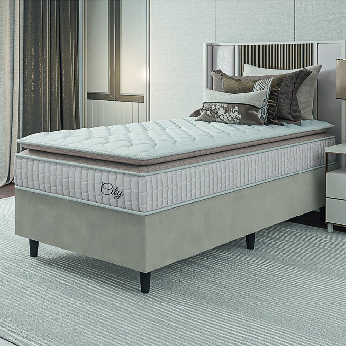 MODELO: Cama Box Colchão Solteiro Molas Ensacadas City Pillow Top 88x188x61cm