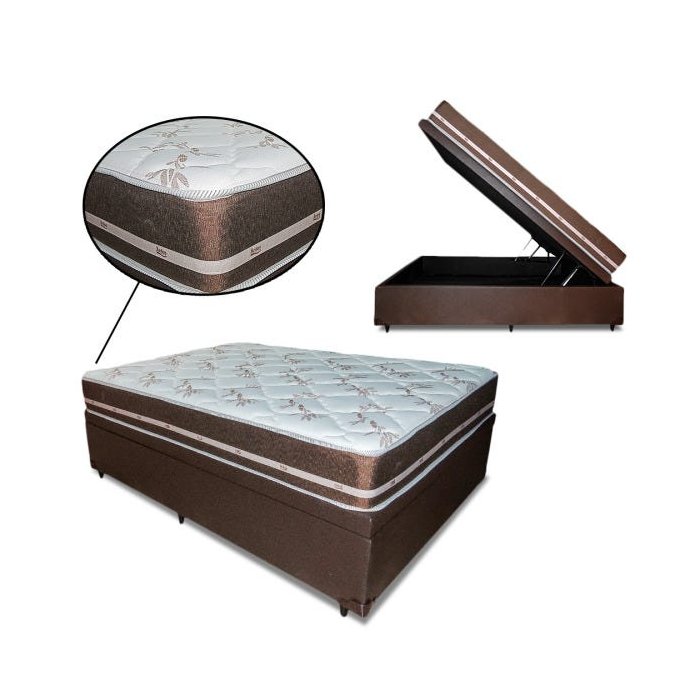 Cama Box com Baú Casal + Colchão de Molas Classic