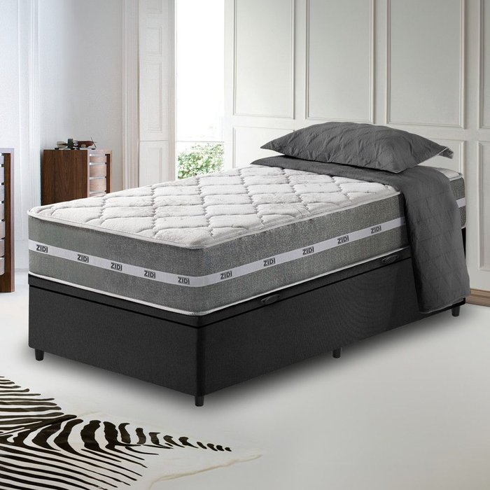 Cama Box com Baú Solteiro Preto + Colchão Molas Ensacadas Miami 88x188x64cm