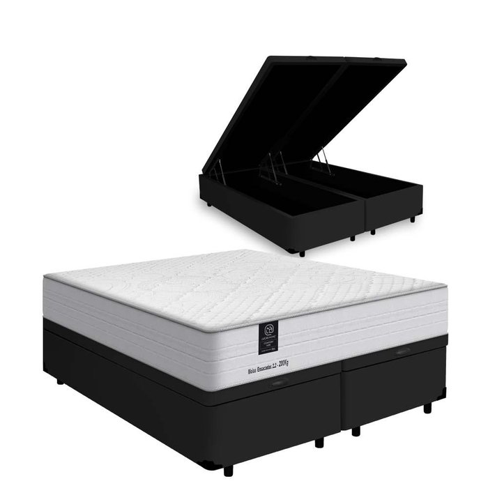 Cama Box com Baú Super King Preta + Colchão de Molas Ensacadas - Lucas Home - Comfort Size 193cm
