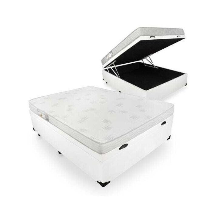Cama Box com Baú Viúva + Colchão de Espuma D23 Ortobom Light Liso 128x188x54cm Branco