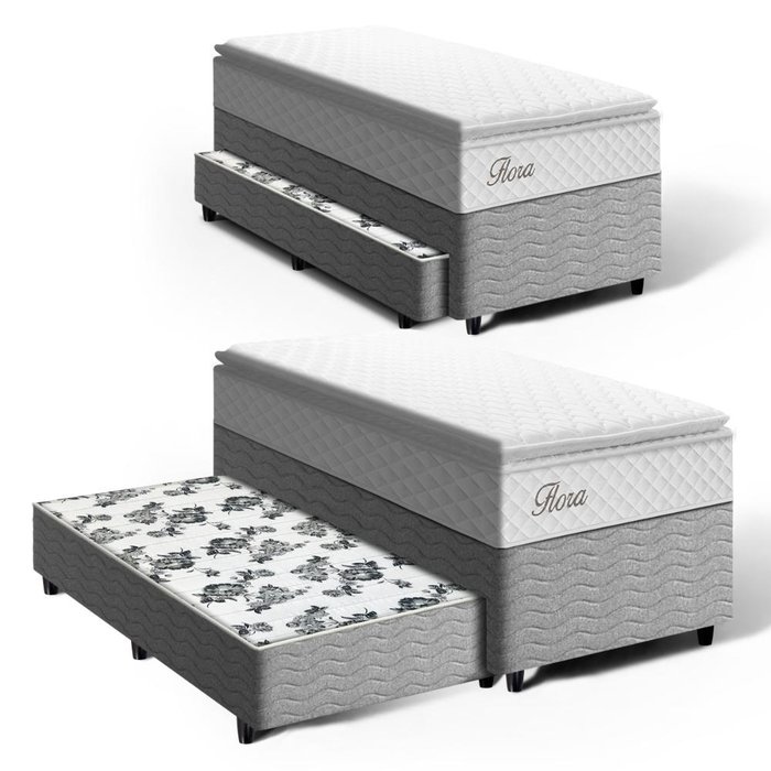 Cama Box com Colchão de Molas Ensacadas Pillow Top Flora + Auxiliar de Espuma Unique Solteiro 88cm Cinza
