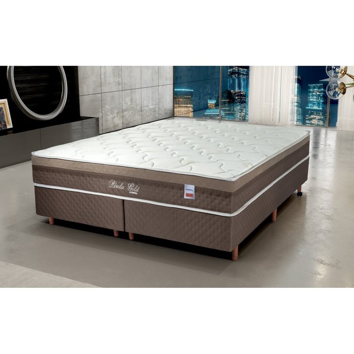 Cama Box com Colchão Queen Size Molas Ensacadas Perola Gold 158x198x61cm