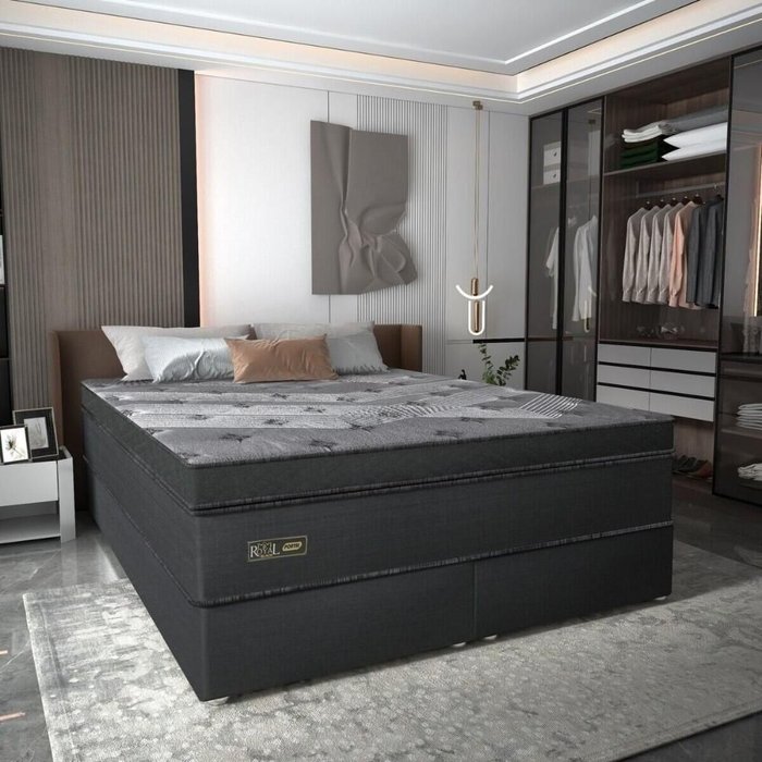 Cama Box Conjugado King com Colchão 193x78x203 Royal Black Gazin Cr35300 Chumbo Escuro