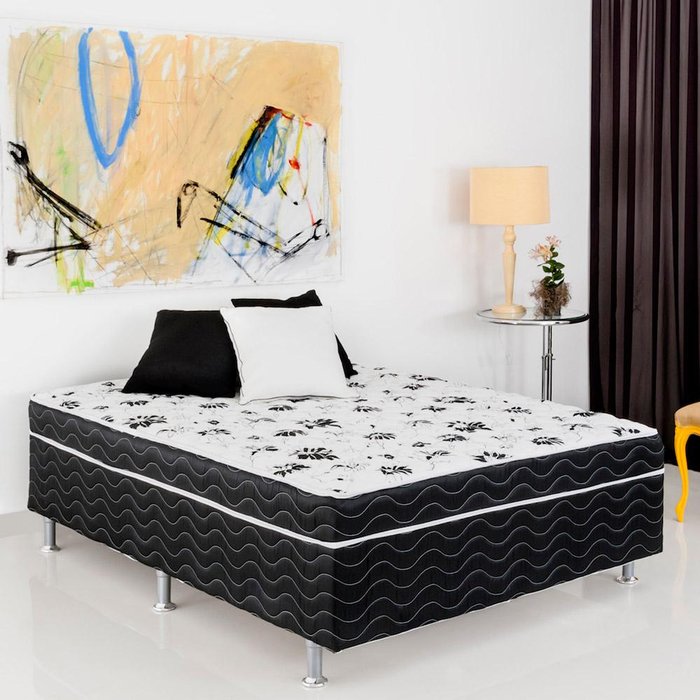 Cama Box Conjugado Union Ortobom Ortopedic Solteirão Preto e Branco 108x188x43 Preto e Branco